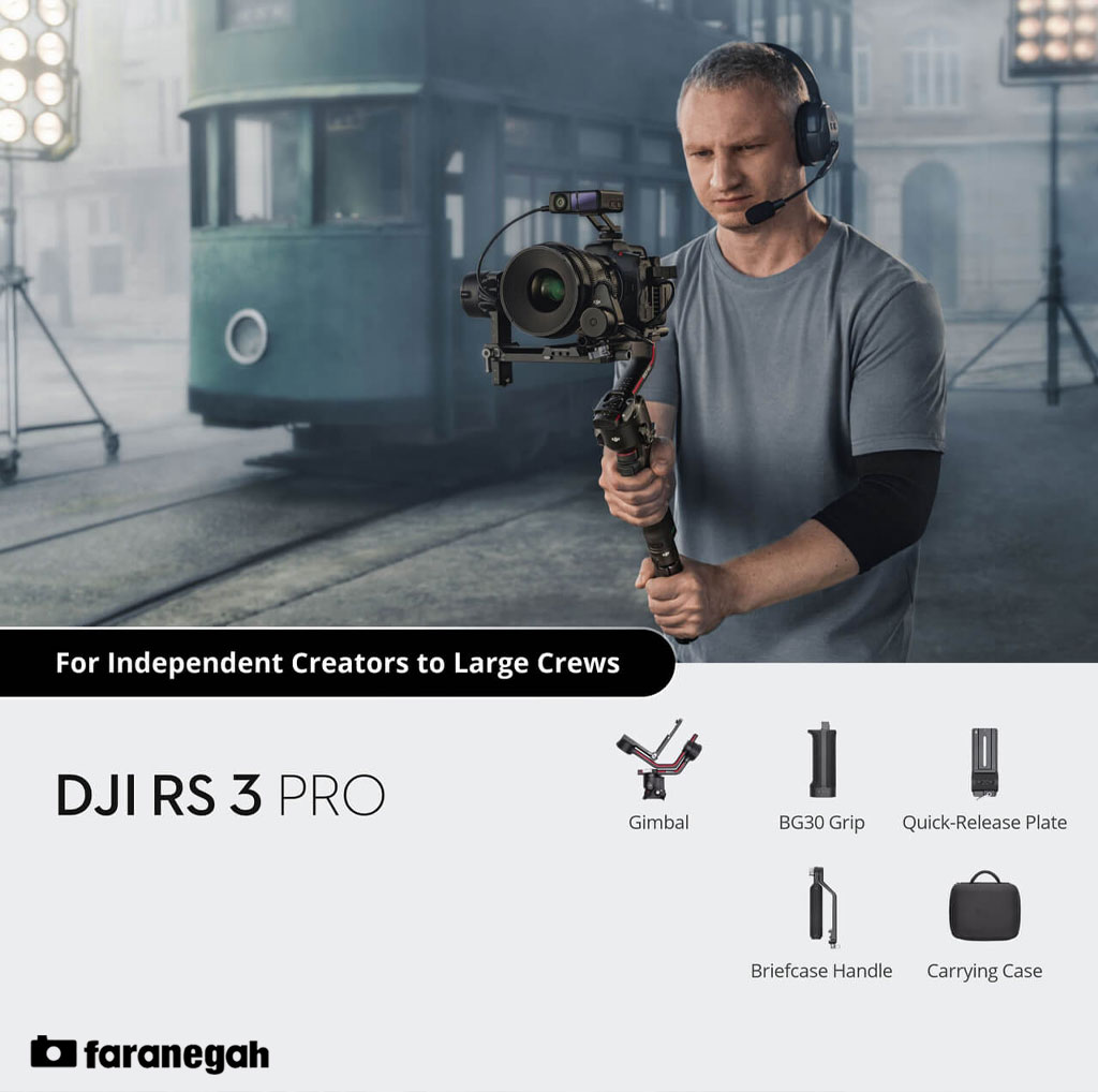 با خرید گیمبال دوربین آر اس 3 پرو DJI RS3 Pro Gimbal Stabilizer هیچ چیز دور از دسترس نیست. محصولی که در حد و اندازههای تولید یک فیلم سینمایی بلند یا یک تیزر تبلیغاتی کوتاهِ حرفهای است. هرچند برای تولید یک فیلم سینمایی، تیزر یا هر نوع محتوای ویدیویی دیگری، بسته به سناریوی مد نظرمان، تجهیزات متعدد دیگری را هم نیاز داریم؛ اما قطعا یکی از سه اولویت اول شما تهیه گیمبال است.