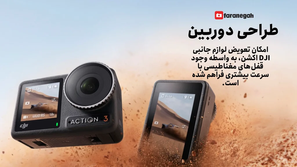 DJI Action 3، یک دستگاه فوق العاده قدرتمند بوده که به واسطه پویایی و ویژگی های نوآورانه خود، به دوربینی فراتر از حد تصور تبدیل شده است. طراحی مغناطیسی هوشمندانه این دوربین به فرد، این امکان را میدهد که بدون وقفه و دردسر، لوازم جانبی آن را تعویض کرده و فیلم ماجراجویی خود را در حال حرکت به تصویر بکشد. با DJI Action قالب ها شکسته خواهند شد.